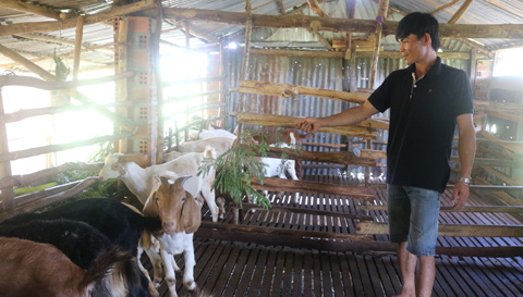 Gia đình anh Hoàng Đình Tú ở buôn Hằng 1A trước đây là hộ nghèo, nguồn thu nhập chính dựa vào 2 sào cà phê già cỗi. Năm 2018, gia đình anh Tú được Phòng Nông nghiệp và Phát triển nông thôn huyện hỗ trợ 2 con dê sinh sản từ mô hình giảm nghèo bền vững. Được quan tâm hỗ trợ kỹ thuật chăn nuôi từ các lớp tập huấn, anh Tú đã mạnh dạn phát triển đàn dê đến nay lên 30 con. Ngoài được hỗ trợ dê giống, gia đình anh Tú còn được UBND xã cho nhận thầu hồ nước khoảng 3 ha để trồng lúa, nuôi cá. Chính những sự trợ lực kịp thời này đã giúp gia đình anh vượt qua khó khăn, ổn định cuộc sống.