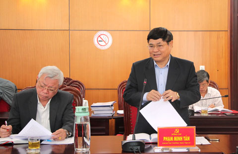 Phó Bí thư Thường trực Tỉnh ủy Phạm Minh Tấn phát biểu ý kiến tại cuộc họp
