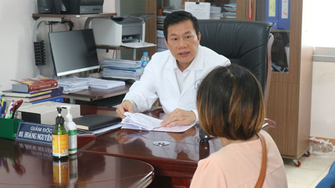 Bác sĩ Trung tâm Da liễu tỉnh tư vấn cho một bệnh nhân mang thai mắc bệnh vảy nến. Ảnh: Quang Nhật