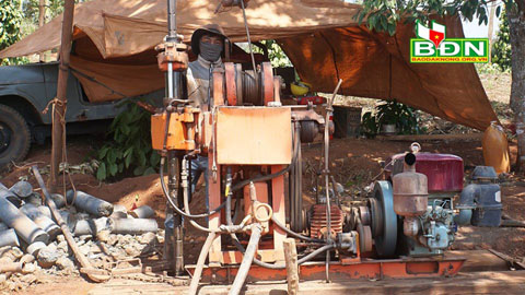 Gia đình anh Thưởng đang khoan giếng ở rẫy để chủ động nguồn nước tưới cho cà phê