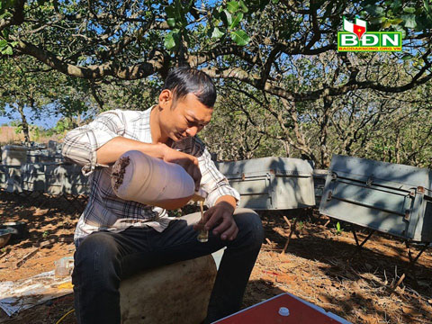Mỗi lít mật ong anh Long bán tại vườn từ 80.000-100.000 đồng