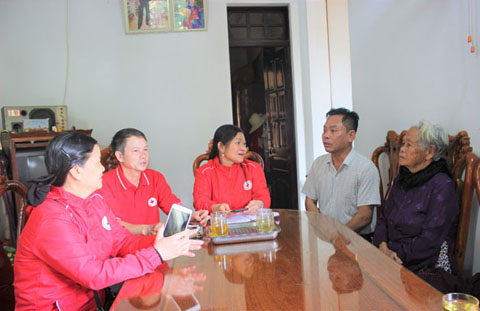 Cán bộ Hội Chữ thập đỏ huyện Ea Kar trao đổi cách thức tuyên truyền, vận động hiến máu nhân đạo.