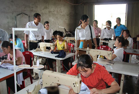 Hội viên phụ nữ xã Dray Sáp (huyện Krông Ana) tham gia học may dân dụng.