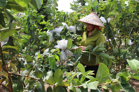 Riêng cây ổi, sau 6 tháng trồng đã ra trái nhưng gia đình chị Hồng cắt bỏ hết để dưỡng cây, đủ 14 tháng mới bắt đầu đi vào kinh doanh chính thức, đến nay đã thu được gần 2 tấn ổi. Đặc biệt, giống ổi chuẩn nên chất lượng quả ổi thơm, giòn, ngọt, được người tiêu dùng ưa chuộng, thậm chí người dân còn tìm đến tận vườn tham quan và đặt hàng lâu dài với giá từ 10.000 - 15.000 đồng/kg.