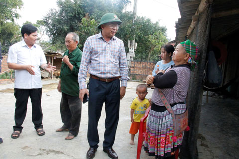 Ông Nguyễn Đình Thìn (đội mũ), Phó Giám đốc Ban Quản lý dự án đầu tư xây dựng công trình giao thông và nông nghiệp phát triển nông thôn tỉnh trò chuyện, nắm bắt tâm tư nguyện vọng của người dân.