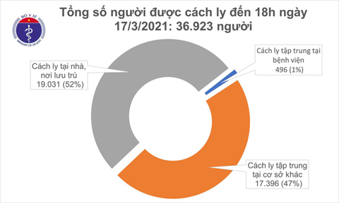 Tổng số người tiếp xúc gần và nhập cảnh từ vùng dịch đang được theo dõi sức khỏe (cách ly) là 36.923.