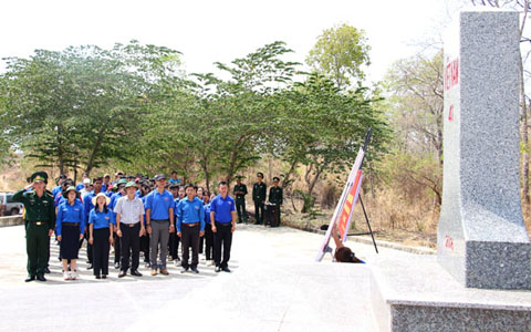 Trong cái nắng oi ả của những ngày đầu tháng Ba, chúng tôi được tham dự một buổi lễ đặc biệt tại cột mốc số 41 - mốc cuối cùng trên tuyến biên giới giữa hai tỉnh Đắk Lắk và Mundulkiri (Vương quốc Campuchia). Đó là lễ kết nạp Đoàn cho 40 thanh niên ưu tú có thành tích trong học tập, rèn luyện trưởng thành từ các hoạt động phong trào của xã Ia R’vê (huyện Ea Súp). Trong không khí trang nghiêm, các bạn trẻ đã ôn lại truyền thống hào hùng của lực lượng bộ đội biên phòng, tìm hiểu về lịch sử hình thành cột mốc này. Qua lời kể của cán bộ, chiến sĩ, các bạn trẻ càng thấu hiểu về những khó khăn, gian khổ trong quá trình xây dựng cũng như ý nghĩa của việc bảo vệ cột mốc, bảo vệ vững chắc độc lập, chủ quyền, toàn vẹn lãnh thổ, an ninh biên giới quốc gia.