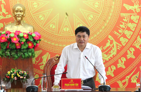 Phó Bí thư Thường trực Tỉnh ủy, Phó Trưởng Ban Chỉ đạo bầu cử tỉnh Phạm Minh Tấn phát biểu ý kiến tại cuộc họp