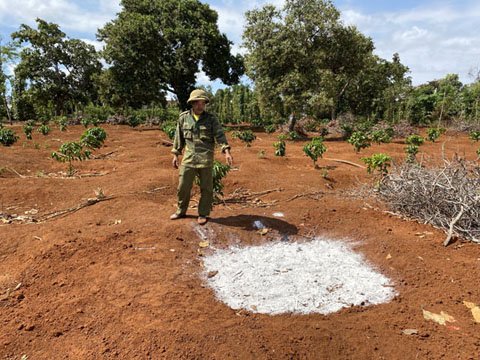 Số heo chết do dịch tả heo châu Phi của gia đình anh Trịnh Quốc Hoan được chôn lấp và khử khuẩn bằng vôi bột