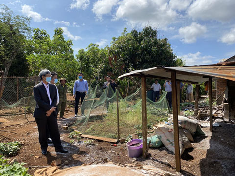 Lãnh đạo Cục Thú y, Chi cục Thú y tỉnh và huyện kiểm tra ổ dịch tại xã Ea Kiết