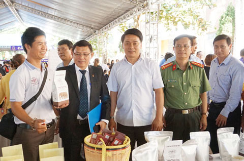 Phó Chủ tịch Thường trực UBND tỉnh Nguyễn Tuấn Hà (thứ hai từ trái sang) tham quan gian hàng trưng bày các sản phẩm khởi nghiệp tại Ngày hội khởi nghiệp tỉnh Đắk Lắk năm 2020.