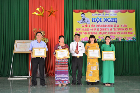 Nhân dịp này, Đảng ủy xã Hoà Thắng đã trao Giấy khen cho 4 tập thể và 12 cá nhân có thành tích tiêu biểu trong học tập và làm theo tư tưởng, đạo đức, phong cách Hồ Chí Minh giai đoạn 2016 - 2021.