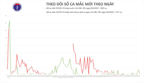 Đến nay, tổng số ca mắc Covid-19 ở nước ta là 2.620, trong đó 1.603 ca mắc do lây nhiễm trong nước. Số lượng ca mắc mới tính từ ngày 27-1 đến nay là 910.