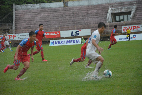 Trận "thủy chiến" ở mùa giải 2020 mà các cầu thủ áo đỏ Đắk Lắk thua An Giang 1-3.