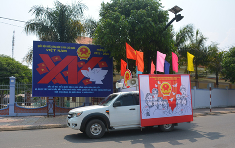 Xe loa tuyên truyền về công tác bầu cử ở thị trấn Krông Kmar (huyện Krông Bông).