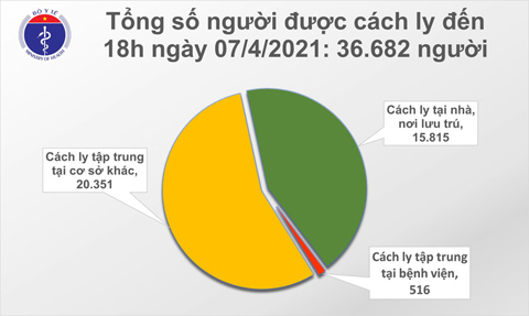 Tổng số người tiếp xúc gần và nhập cảnh từ vùng dịch đang được theo dõi sức khỏe (cách ly): 36.682. Trong ngày có thêm 7 bệnh nhân được công bố khỏi bệnh (BN2502-BN2578-BN2577-BN2367-BN2537-BN2406-BN1882) nâng số ca điều trị khỏi lên 2.429 ca. Số ca tử vong là 35.
