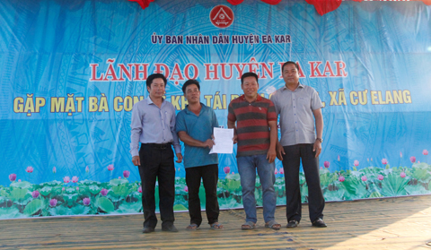 Đảng viên Hoàng Văn Đội (thứ hai từ trái sang) nhận quyết định thành lập Tổ tự quản lâm thời Khu tái định cư số 1 (xã Cư Elang, huyện Ea Kar).