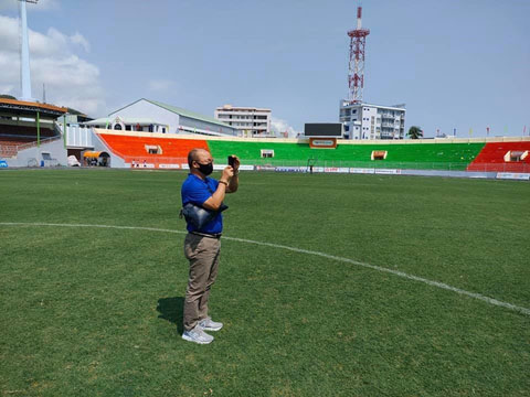 Huấn luyện viên Park Hang-seo tự mình đến sân Quy Nhơn kiểm tra mặt cỏ, các phòng chức năng trước khi đội tuyển Việt Nam chọn địa điểm tập huấn. Ảnh: Lâm Xung