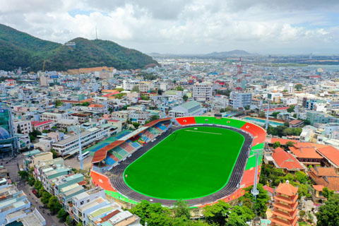 Sân vận động Quy Nhơn vừa nâng cấp, sửa chữa, được đánh giá là một trong những sân cỏ đẹp nhất trên cả nước. Ảnh: Nguyễn Dũng