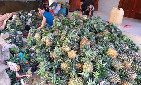 Gia đình ông Nguyễn Văn Hùng (thôn 1) có hơn 15 ha dứa đã cho thu hoạch. Những năm trước, việc thu hoạch và tiêu thụ dứa của gia đình ông rất khó khăn bởi diện tích dứa lớn, lại thu hoạch đồng loạt nên nhiều khi không thuê được công bẻ; dứa chín thu hoạch về thường bị thương lái ép giá, thậm chí không mua do thị trường bán lẻ tiêu thụ không kịp. Nhiều trà dứa đến thời điểm thu hoạch nhưng ông không dám bẻ vì sợ mang về nhà để lâu không ai mua sẽ bị hỏng. Dứa bán dễ hay khó, giá thấp hay cao phụ thuộc hoàn toàn vào thương lái và các tiểu thương bán lẻ ở các chợ. Giá dứa thời điểm chính vụ chỉ đạt từ 5.000 – 10.000 đồng/quả. Hiện nay một số diện tích dứa của bà con thôn 1 đã bị nhiễm bệnh nấm dứa trắng khiến cây dứa lụi dần rồi chết.