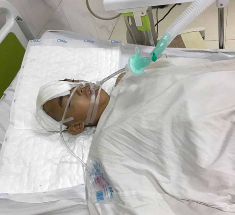 Cháu Tiến đang cấp cứu tại Bệnh viện Đa khoa vùng Tây Nguyên