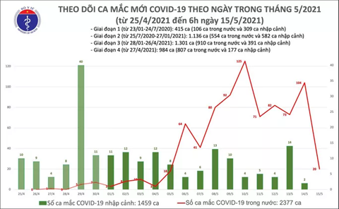 Sáng 15-5, ghi nhận thêm 20 ca mắc Covid-19 trong nước