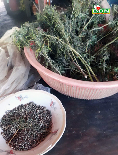 Cây cần sa và hạt cần sa khô thu giữ tại vườn Lê Văn Hoàng