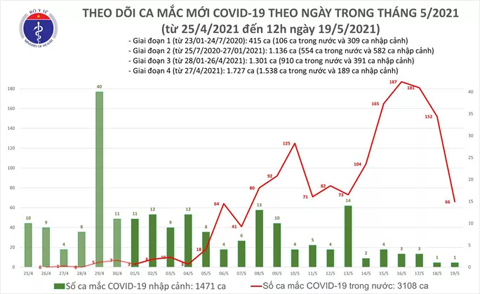 Trong 36 ca trong nước vừa được công bố trưa 19-5, có 27 ca phát hiện trong khu cách ly và 9 ca trong khu vực đã được phong toả. Trong đó, Bắc Giang và Bắc Ninh là 20 ca.