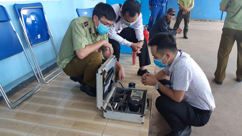 Lực lượng chức năng kiểm tra nhanh chất lượng xăng dầu