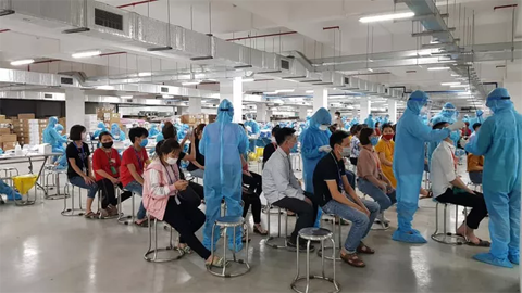 Lấy mẫu xét nghiệm SARS-CoV-2 cho công nhân ở khu công nghiệp