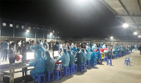 Lấy mẫu xét nghiệm cho các công nhân trong khu công nghiệp ở Bắc Giang