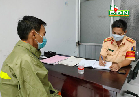Anh Tăng Văn Lĩnh trình báo sự việc với Phòng CSGT Công an tỉnh Đắk Nông