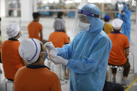 Tiếp tục đẩy nhanh xét nghiệm Covid-19 trong các khu công nghiệp Bắc Giang. Ảnh: Quang Vinh.