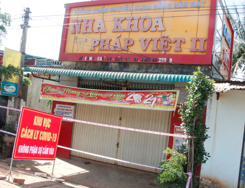 Phòng khám Nha khoa Pháp Việt 2 tại xã Ea Wy bị phong tỏa do liên quan đến ca bệnh COVID-19.