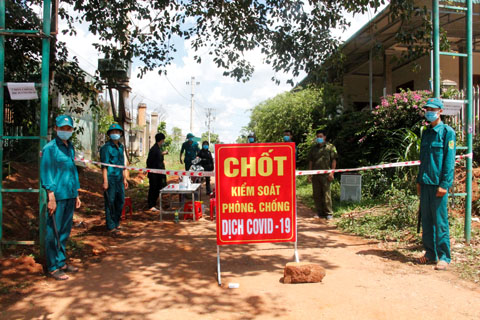 Lực lượng trực tại điểm phong tỏa ở thôn 6B, xã Cư Mốt.