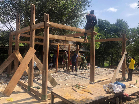 Các lực lượng chức năng hỗ trợ người dân tháo dỡ nhà cửa để chuyển tới khu tái định cư