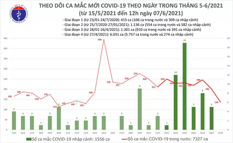 - CA BỆNH BN8853 ghi nhận tại TP Hà Nội: Nữ, 45 tuổi, địa chỉ tại huyện Đông Anh, TP Hà Nội, đang điều tra dịch tễ. Kết quả xét nghiệm ngày 6-6 dương tính với SARS-CoV-2.