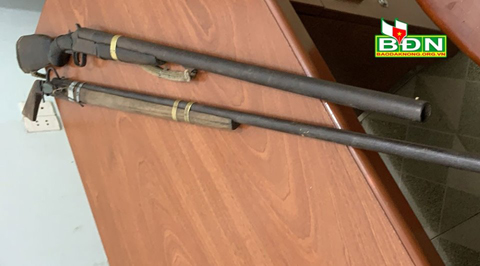 2 súng tự chế thu giữ trong quá trình khám xét nơi ở của các đối tượng