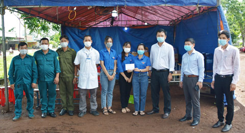 Đoàn đã ân cần thăm hỏi điều kiện làm việc, sinh hoạt của lực lượng tham gia chốt kiểm soát; đồng thời đề nghị trong điều kiện làm việc 24h/ngày, lực lượng tham gia chốt kiểm soát cần đảm bảo sức khỏe, trang bị đầy đủ thiết bị, vật tư y tế, bảo hộ, chuẩn bị chỗ nghỉ ngơi luân phiên trong các ca trực.