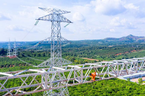 Thi công đường dây điện tại Dự án Nhà máy điện gió Ea Nam.