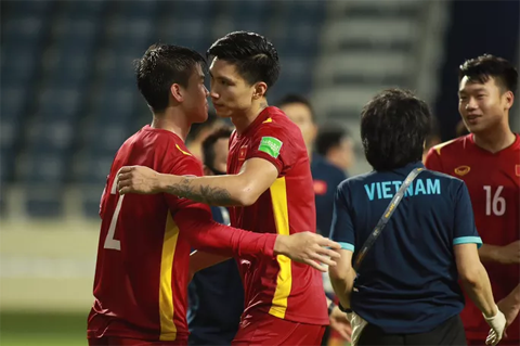 Đoàn Văn Hậu và Duy Mạnh chia sẻ niềm vui sau chiến thắng quý giá 2-1 trước Malaysia