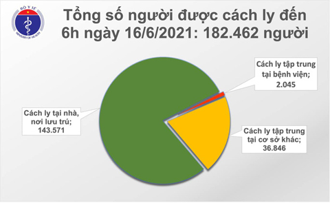 Tổng số người tiếp xúc gần và nhập cảnh từ vùng dịch đang được theo dõi sức khỏe (cách ly): 182.462, trong đó cách ly tập trung tại bệnh viện: 2.045; cách ly tập trung tại cơ sở khác: 36.846 và cách ly tại nhà, nơi lưu trú: 182.462