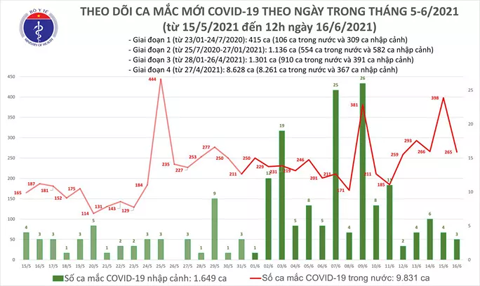Trong số 176 ca mắc Covid-19 được Bộ Y tế công bố trưa 16-6, có 174 ca trong nước, riêng Bắc Giang 128 ca. Việt Nam hiện có 11.480 bệnh nhân.
