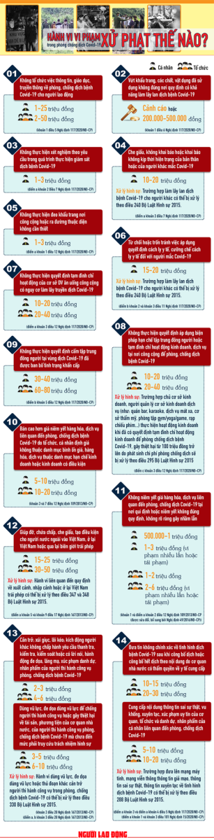 Luật sư Cao Thế Luận, Công ty TNHH Luật Kao Kiến, cho biết theo quy định có các hành vi vi phạm pháp luật trong công tác phòng chống Covid-19 sau: