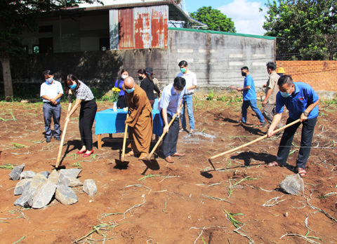 Sáng 18-6, Hội LHTN Việt Nam tỉnh phối hợp với Ban trị sự giáo hội Phật giáo Việt Nam tỉnh, UBND huyện Krông Pắc tổ chức Lễ khởi công xây dựng Lớp học điểm trường thôn 7, trường Mẫu giáo Hoa Lan, xã Ea Phê (huyện Krông Pắc).