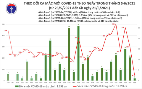 Trong số 47 ca mắc Covid-19 được Bộ Y tế công bố sáng 21-6, TP HCM ghi nhận số ca nhiễm nhiều nhất với 33 trường hợp. Đợt dịch này, Việt Nam đã ghi nhận gần 10.000 ca mắc ở 42 tỉnh, thành.