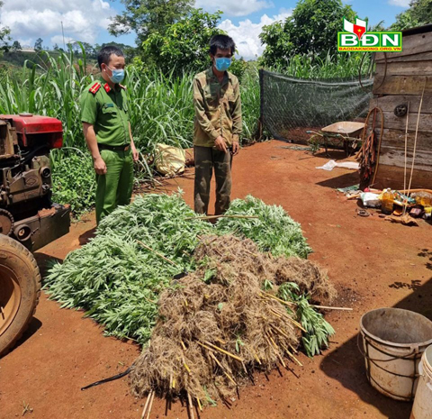 Cũng trong ngày 20/6, Đội Cảnh sát hình sự, kinh tế, ma túy Công an huyện Đắk Song phối hợp với Công an thị trấn Đức An (Đắk Song) tiến hành kiểm tra rẫy cà phê của ông Nguyễn Văn Nhiệm, ở Tổ dân phố 8, thị trấn Đức An và phát hiện 1 vụ trồng trái phép 325 cây cần sa có chiều cao từ 1,2m đến 1,5m được trồng xen rẫy hồ tiêu diện tích 1,6ha. Ông Nhiệm khai nhận, số cây cần sa nói trên được ông trồng từ đầu tháng 5/2021 đến nay với mục đích cho gà ăn.