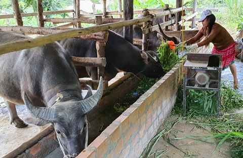 Không những thế, gần 10 năm nay, gia đình anh Chá còn chăn nuôi và trao đổi trâu, bò. Sẵn có hơn 2 sào đất gần nước và tận dụng đất bờ ranh để trồng cỏ, lúc nào anh chị cũng có trong chuồng gần chục con trâu, bò nuôi nhốt. Chị Tồng chia sẻ: “Thấy gia đình nào bán trâu, bò thì mình mua về nuôi nhốt; gia đình nào có nhu cầu mua thì mình bán lại. Lợi nhuận từ việc chăn nuôi và trao đổi trâu, bò mang về nguồn thu hơn 100 triệu đồng mỗi năm”.