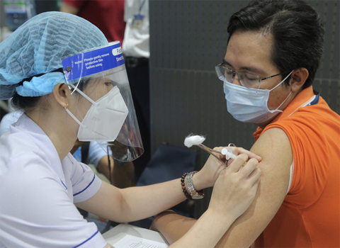Nhân viên Công ty FPT Software - Khu Công nghệ cao được tiêm vắc-xin Covid-19 trong chiến dịch tiêm vắc-xin có quy mô lớn trên cả nước - Ảnh: HOÀNG TRIỀU