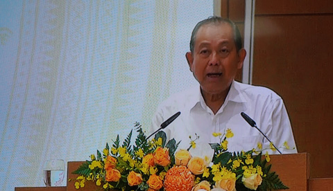 Phó Thủ tướng Thường trực Chính phủ Trương Hòa Bình phát biểu chỉ đạo hội nghị. (Ảnh chụp qua màn hình)